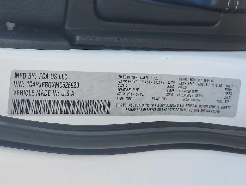 - Rear tires: 265/50TR20.0