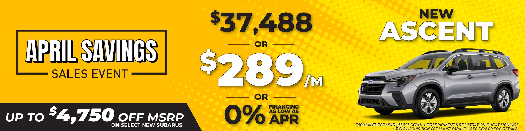 The family-sized Ascent gives you three rows of flexible seating with your choice of seven- and eight-passenger models. There's no limit to your exploration with the all-weather capability of standard Symmetrical All-Wheel Drive and 8.7 inches of ground clearance. Plus you get the confidence of EyeSight® Driver Assist Technology[1] and protective active safety systems on every drive.