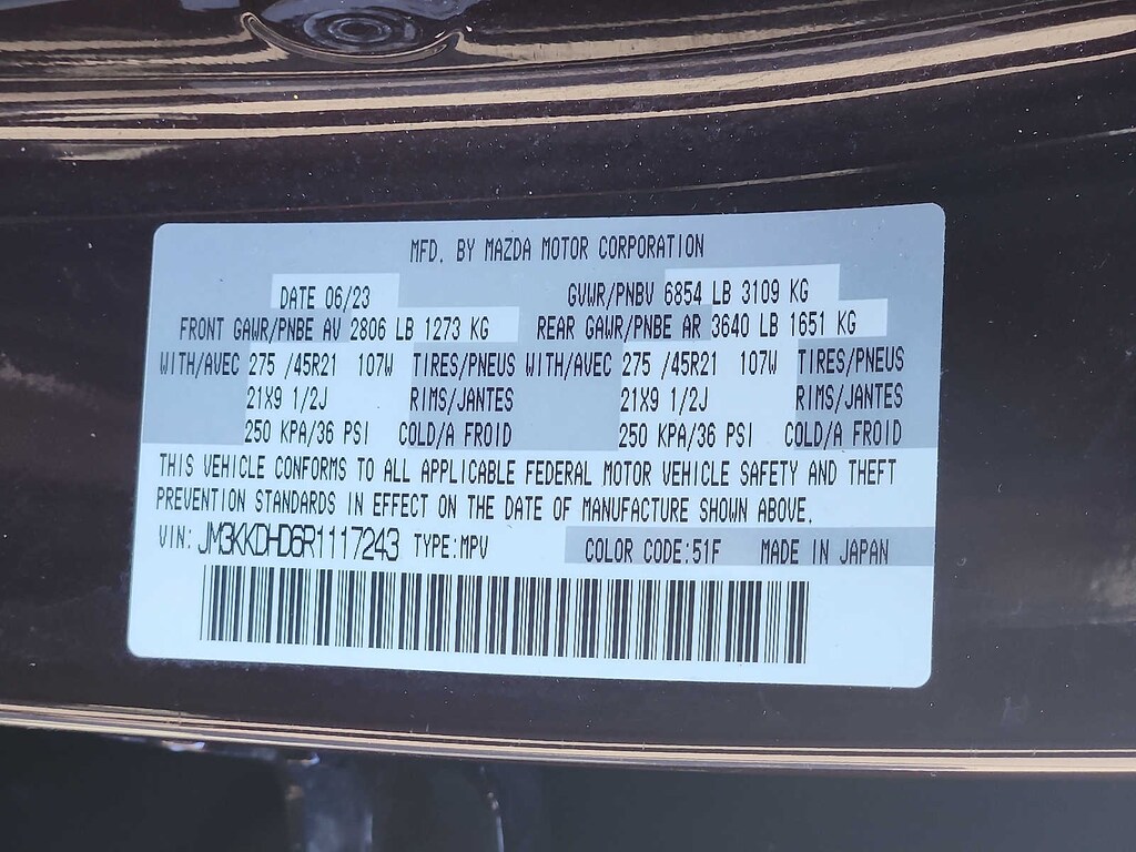 - Front tires: 275/45HR21.0