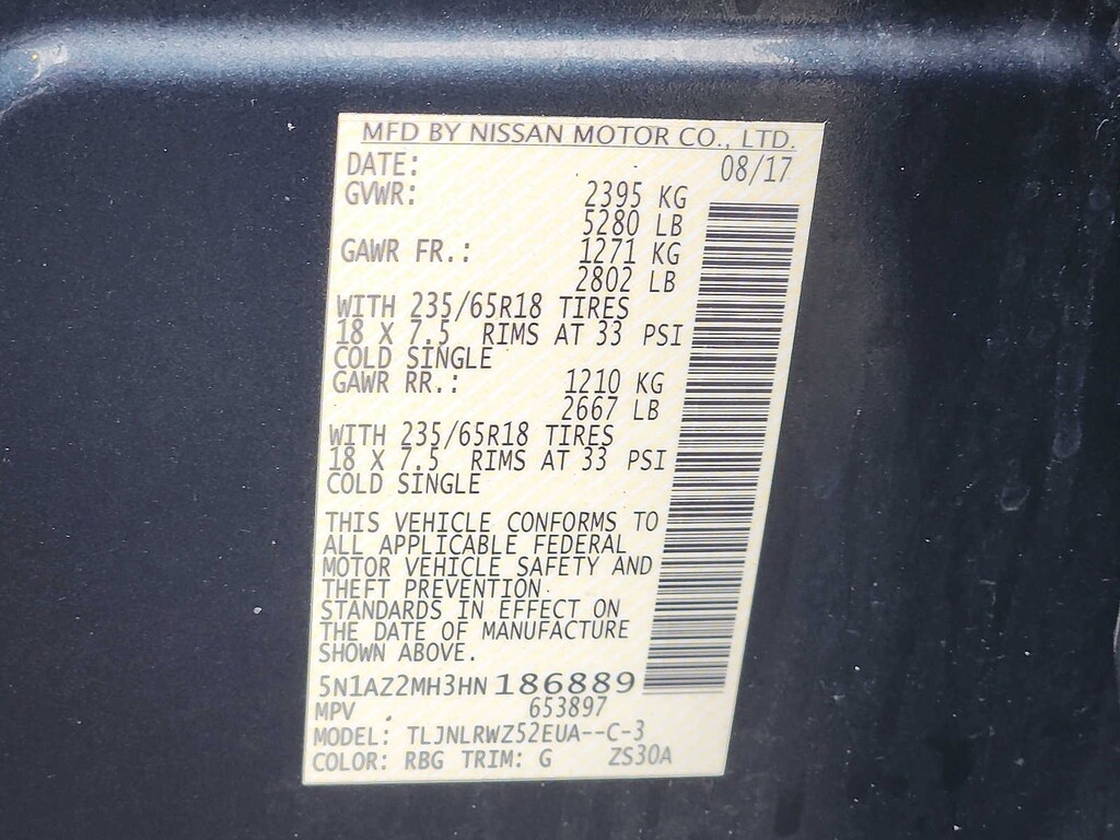 - Rear tires: 235/65TR18.0