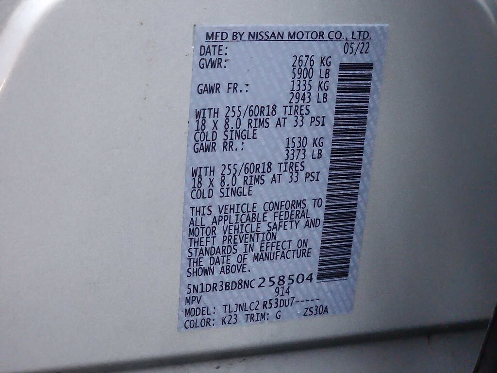 - Rear tires: 255/60HR18.0