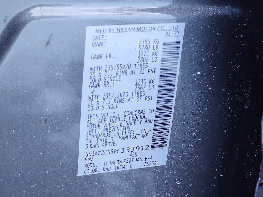 - Front tires: 235/55HR20.0