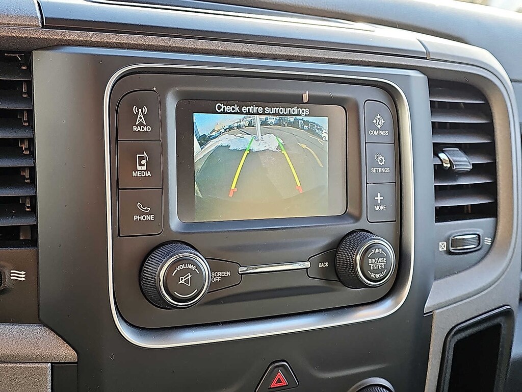 BLACK RAM 1500 EXPRESS GROUP Radio: Uconnect 3 w/5 Display, 5.0 Touchscreen Display, SiriusXM Satellite Radio, No Satellite Coverage w/HI/AK/PR/VI/GU, For More Info, Call 800-643-2112, Charge Only Remote USB Port, Integrated Voice Command w/Bluetooth®, Rear View Day/Night Mirror, Overhead Console, GPS Antenna Input, Temperature & Compass Gauge, Black Ram Head Tailgate Badge, 4x4 Flat Black Badge, Black Headlamp Bezels, Flat Black Ram 1500 Badge, Tires: P275/60R20 BSW AS, Rear Floor Mats, Delete Hemi Badge, Front Floor Mats, Black Painted Honeycomb Grille, Wheels: 20 x 8 Semi-Gloss Black Aluminum, Full Size Temporary Use Spare Tire, Semi-Gloss Black Hub, Remote Keyless Entry w/All-Secure, QUICK ORDER PACKAGE 22J EXPRESS Engine: 3.6L V6 24V VVT, Transmission: 8-Speed Automatic (845RE), Front Fog Lamps, Rear Floor Mats, Front Floor Mats, Body Color Front Fascia, Body Color Grille, Body Color Rear Bumper w/Step Pads, Ram 1500 Express, ANTI-SPIN DIFFERENTIAL REAR AXLE, ADD CLASS IV RECEIVER HITCH, TRANSMISSION: 8-SPEED AUTOMATIC (845RE) (STD), ENGINE: 3.6L V6 24V VVT Flex fuel capable (STD).