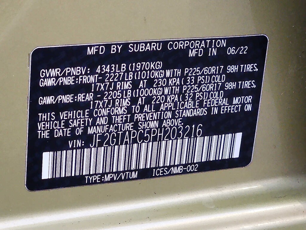 - Front tires: 225/60HR17.0