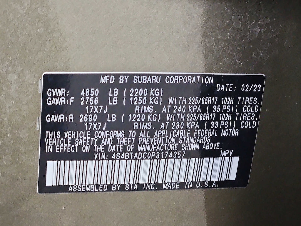 - Front tires: 225/65HR17.0