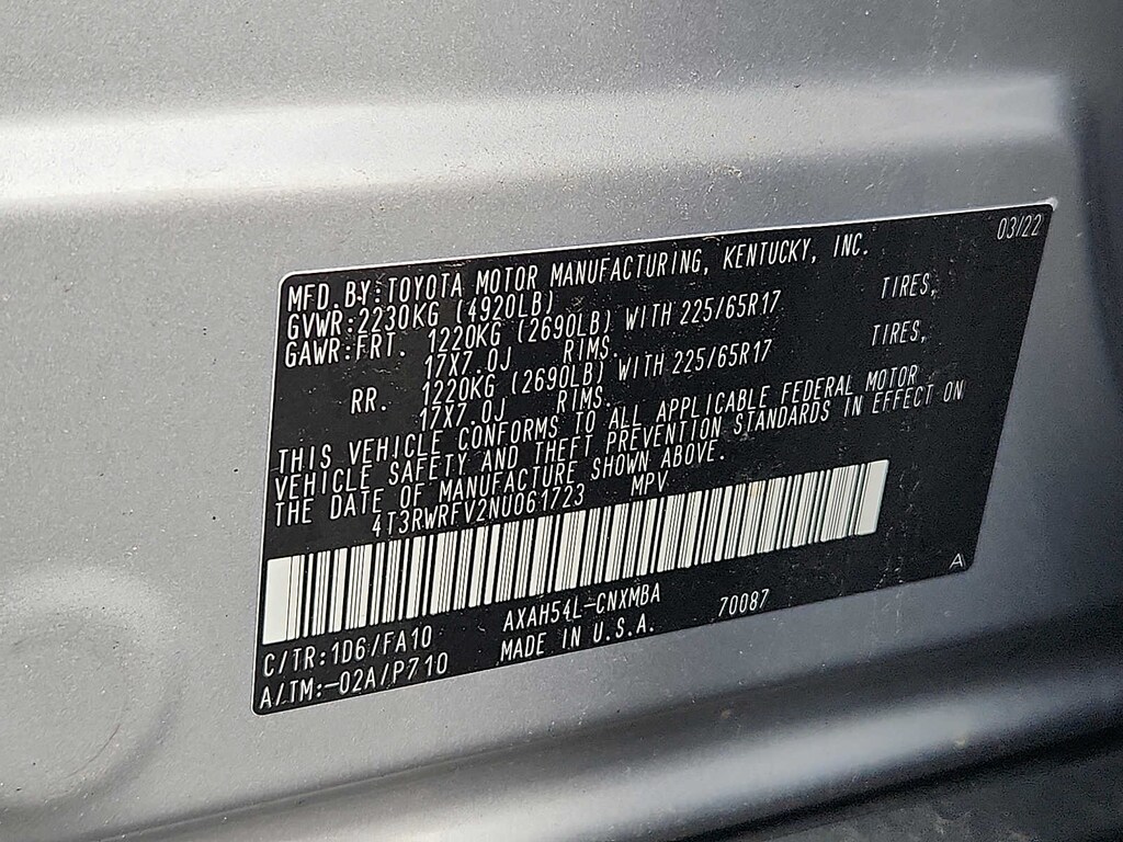 - Rear tires: 225/65HR17.0