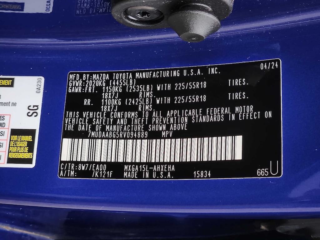 - Rear tires: 225/55VR18.0